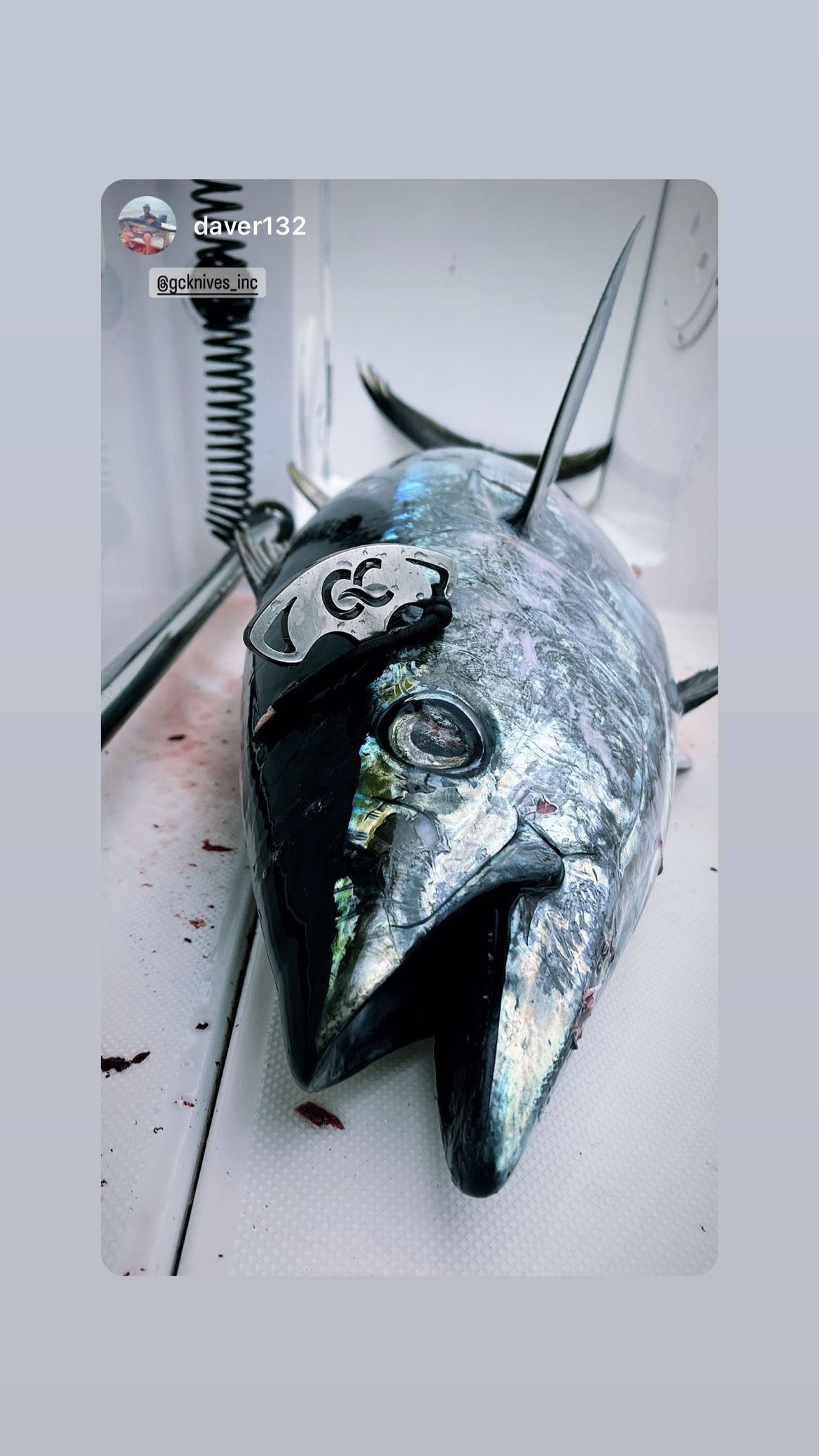 My GC Ikejime fish spike is a purpose build tool to instantly destroy the fish's brain. With tuna fish in particular this is extremely important. Just like deer hunting you want to dispatch your kill as quickly and humanly as possible. This will prevent stress hormones from entering the meat giving it an off or "fishy" taste and smell. It will also prevent the tuna from freaking out and flapping on the deck for up to 15 minutes which bruises and burns up the meat. This technique will also greatly lengthen the shelf life.